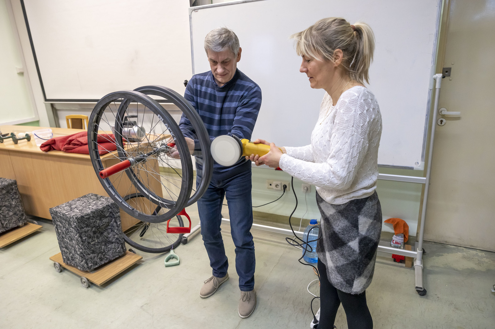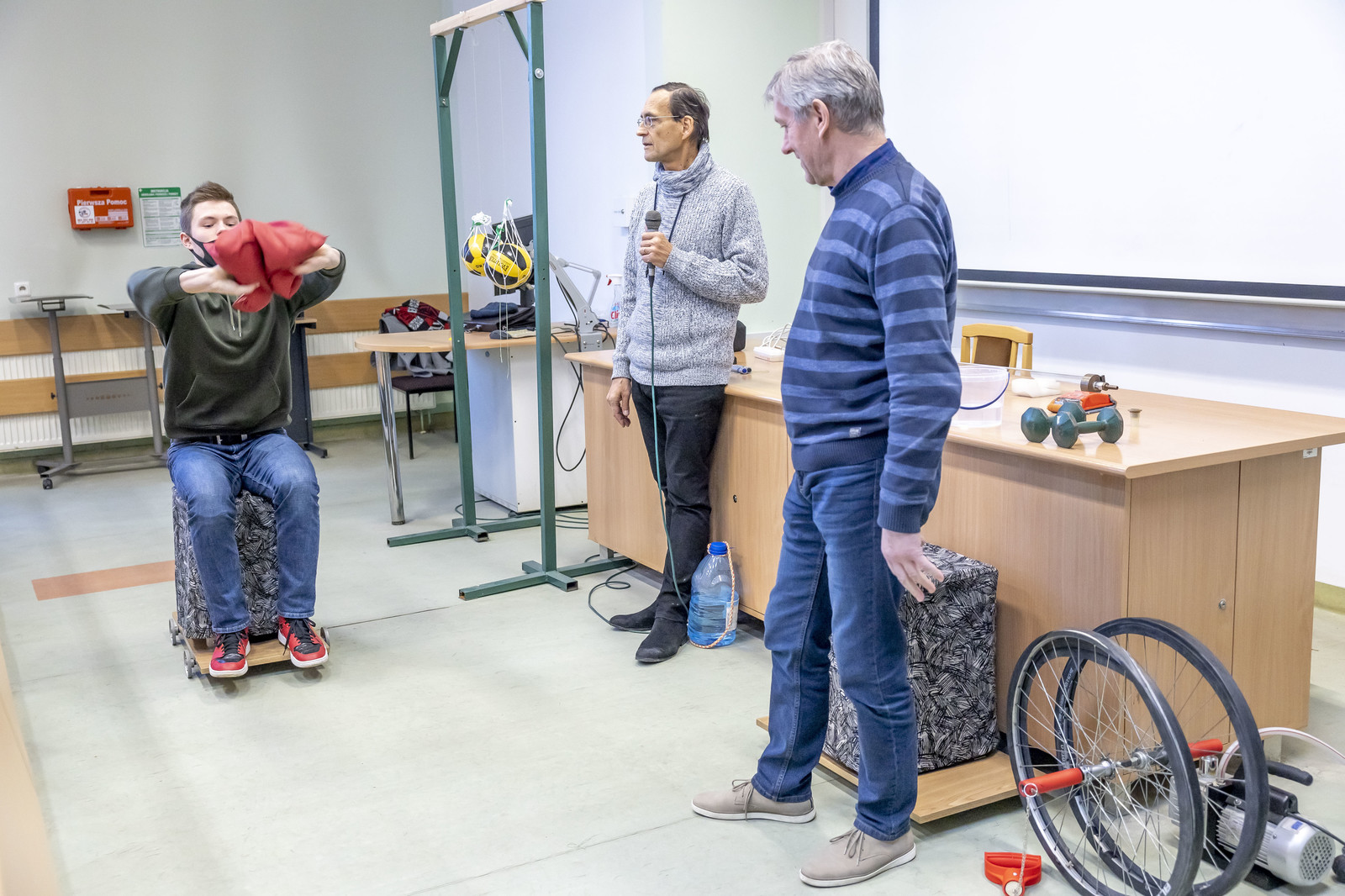 Innowacja ta była możliwa, ponieważ od obecnego roku akademickiego większość zajęć wykładowych z fizyki realizowana jest w jednej sali wykładowej (S2) przygotowanej do prowadzenia demonstracji. Mamy nadzieję, że tego typu zajęcia na stałe zagoszczą w murach Politechniki Rzeszowskiej.