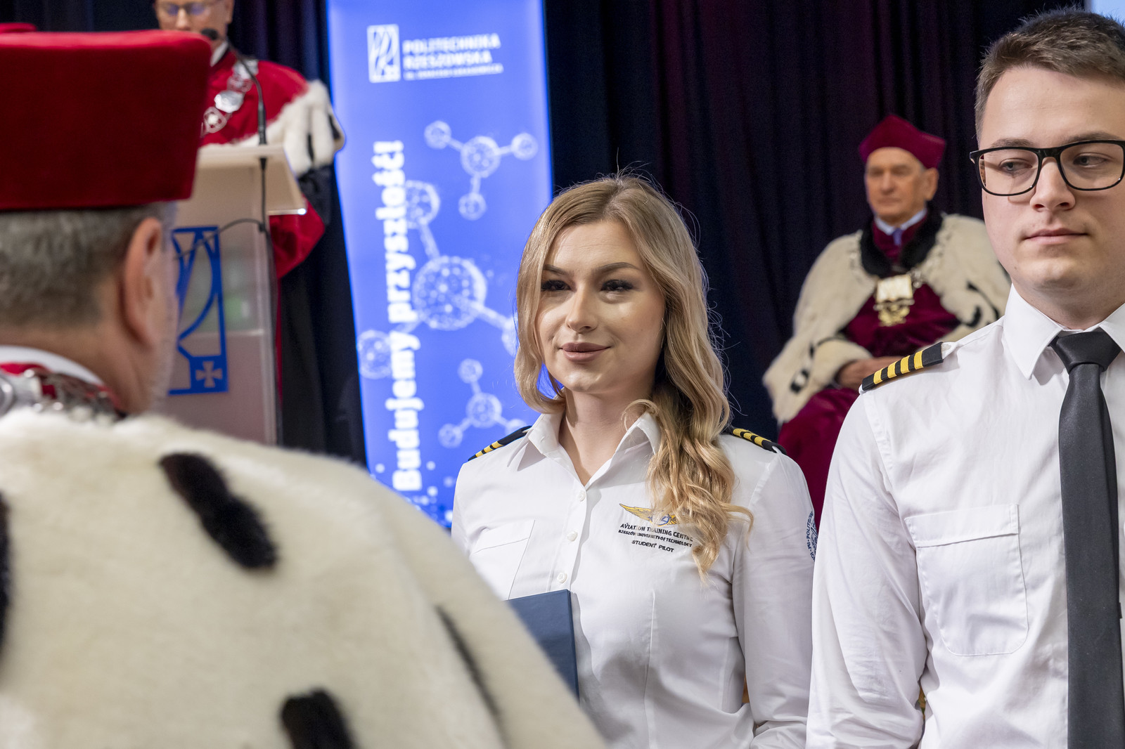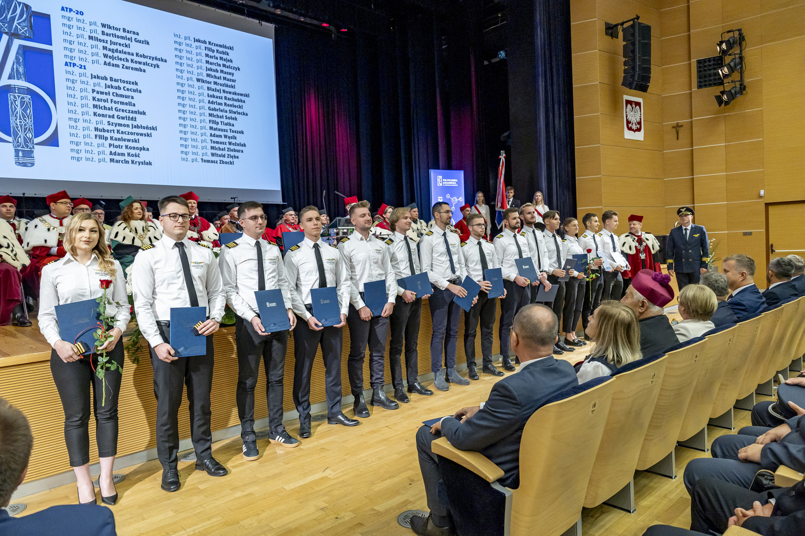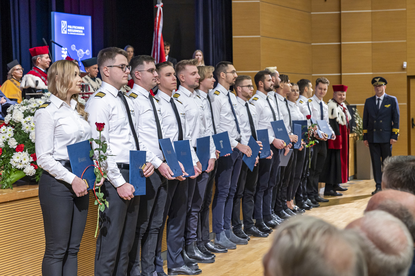 Politechnika Rzeszowska od 50 lat kształci pilotów lotnictwa cywilnego. W Ośrodku Kształcenia Lotniczego do tej pory wykształciliśmy 1261 pilotów, którzy pracują w liniach lotniczych na całym świecie. Na uroczystości kolejna grupa pilotów otrzymała certyfikaty ukończenia szkolenia do licencji pilota komunikacyjnego. Certyfikaty i pagony pilotom wręczyli JM Rektor i dyrektor Ośrodka Kształcenia Lotniczego mgr inż. pil. Tomasz Nowosielski. Miłym akcentem była informacja o nadaniu wyróżnienia prymusowi wśród lotników mgr. inż. Julii Zawidowicz przez Światowe Stowarzyszenie Lotników Polskich. Akt wyróżnienia wręczył prof. Marek Grzegorzewski.
