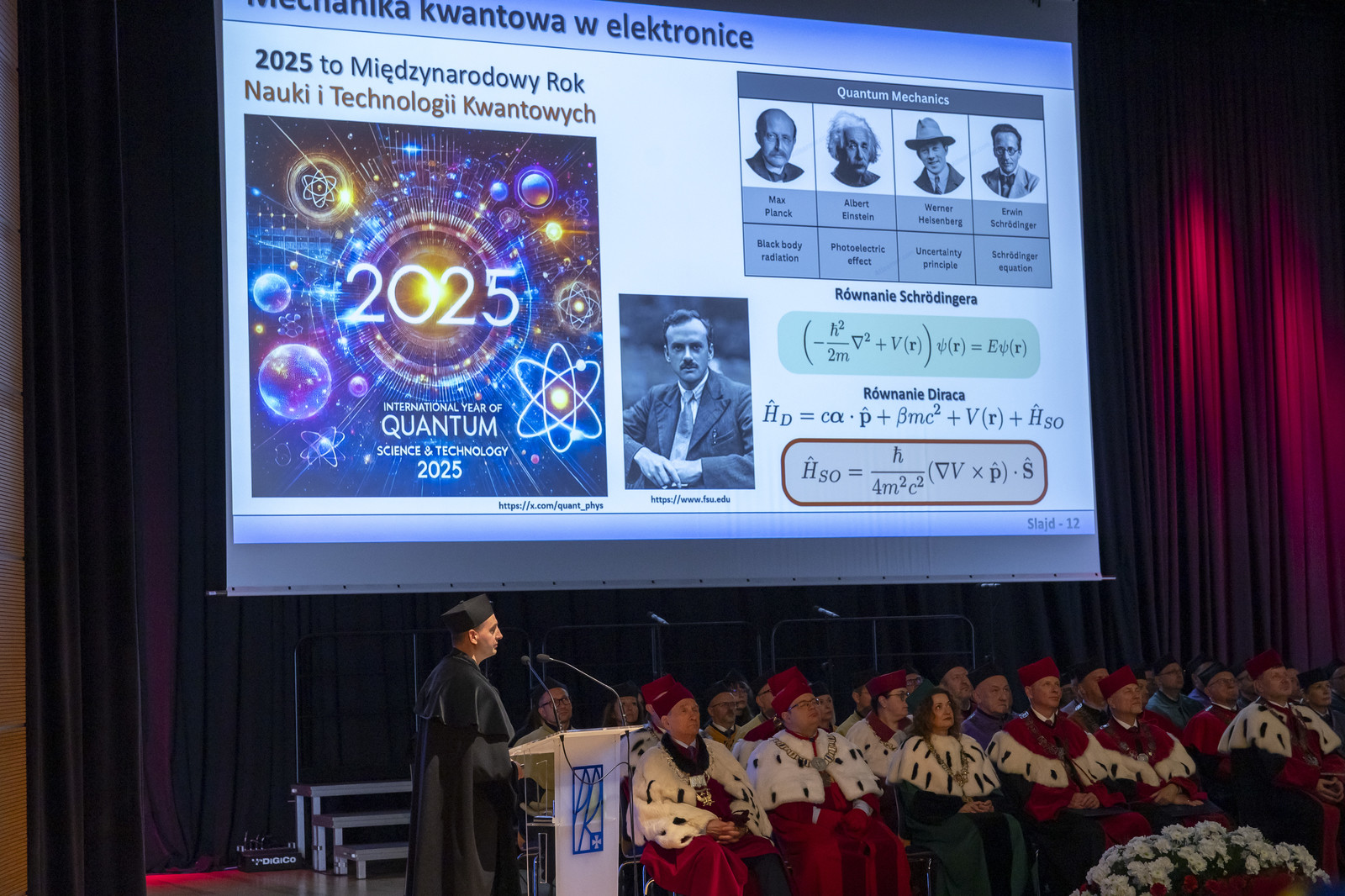 „Droga Młodzieży Akademicka, Szanowni Zebrani, zgodnie z tradycją ogłaszam rok akademicki 2025/2026 na Politechnice Rzeszowskiej za rozpoczęty” – powiedział JM Rektor, uderzając trzy razy berłem, a Chór Akademicki odśpiewał „Gaude Mater Polonia”. Wykład inauguracyjny „Spintronika nadchodząca rewolucja w elektronice?” wygłosił dr inż. Michał Inglot, prof. PRz.