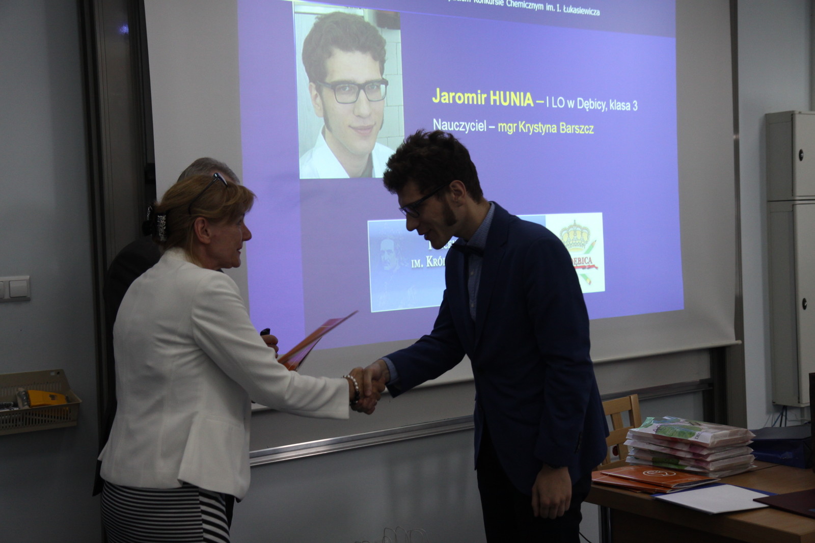 W spotkaniu wzięli udział między innymi: dr hab. inż. Mariusz Oleksy, prof. PRz, prorektor PRz ds. rozwoju i kontaktów z gospodarką, prof. dr hab. inż. Dorota Antos, dziekan Wydziału Chemicznego, dr hab. inż. Mirosław Tyrka, prof. PRz, prodziekan ds. nauki, dr inż. Joanna Wojturska, prodziekan ds. kształcenia, dr inż. Dorota Głowacz-Czerwonka, prodziekan ds ogólnych, prof. Jan Kalembkiewicz, przewodniczący Oddziału Rzeszowskiego Polskiego Towarzystwa Chemicznego a zarazem przewodniczący Zespołu Merytorycznego konkursu, Mariusz Rzucidło, dyrektor zarządu firmy Specjalistyczna Chemia Przemysłowa w Rzeszowie, finaliści konkursu i ich rodziny, nauczyciele, przedstawiciele dyrekcji szkół oraz członkowie Komitetu Organizacyjnego Konkursu.
