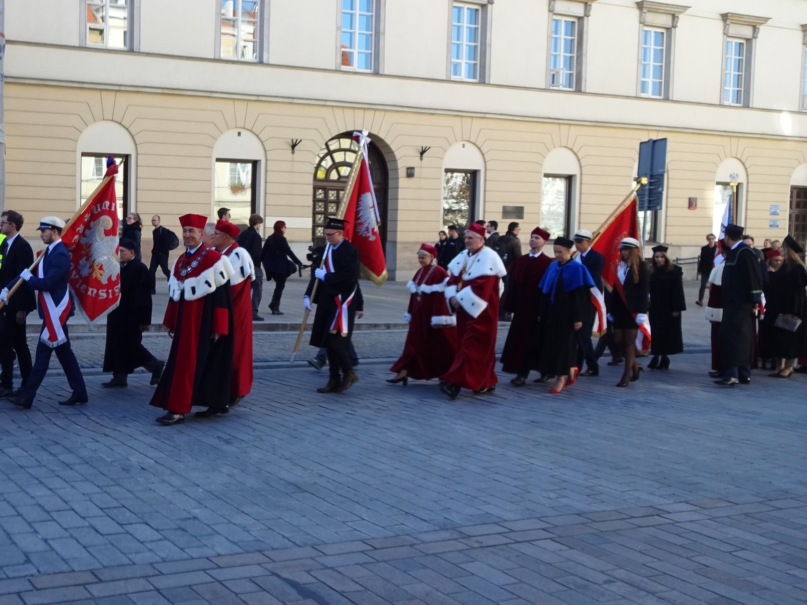 Uroczystości rozpoczęły się mszą świętą w Kościele Św. Krzyża. Po mszy, w uroczystym przemarszu, przedstawiciele świata nauki i szkolnictwa wyższego przeszli spod bramy Uniwersytetu Warszawskiego do Teatru Polskiego.