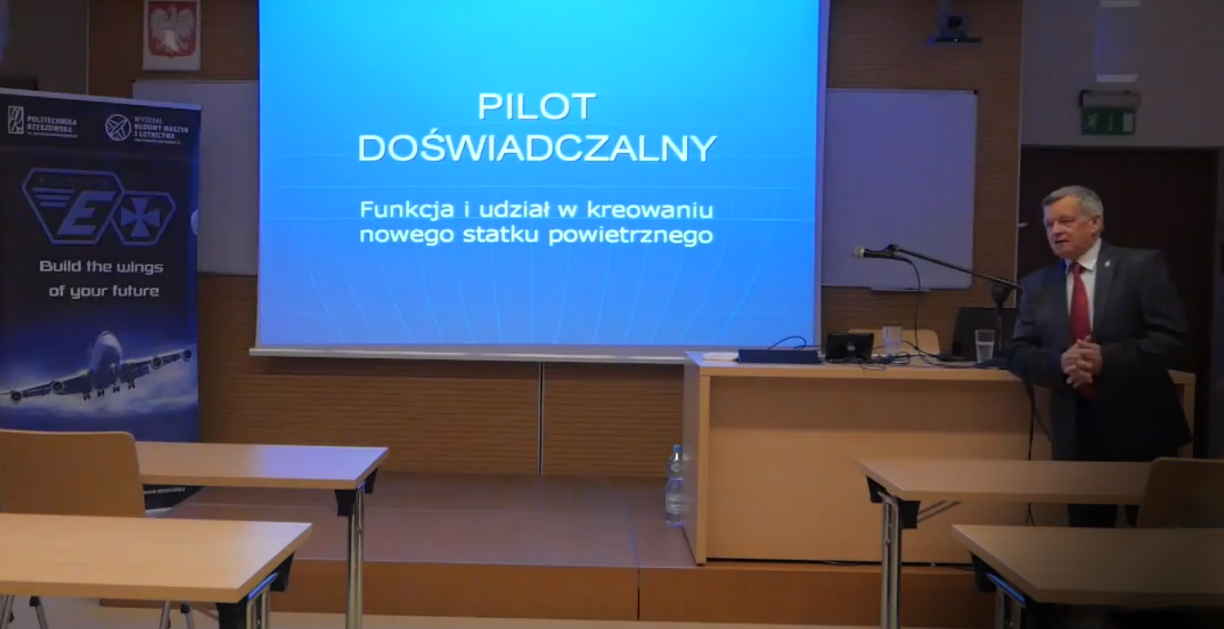 Podczas spotkania Henryk Szkudlarz mówił o zawodzie pilota doświadczalnego, o tym jakie są wymagania żeby wykonywać tę pracę. Ponadto opowiadał o procesie szkolenia pilotów doświadczalnych zarówno w Polsce, jak i w krajach całego świata. Nasz gość mówił również o próbach naziemnych, próbach w locie oraz pomiarach i obliczeniach, a także o regulacji prawnych. Po wykładzie ze strony studentów pojawiło się wiele dodatkowych pytań.